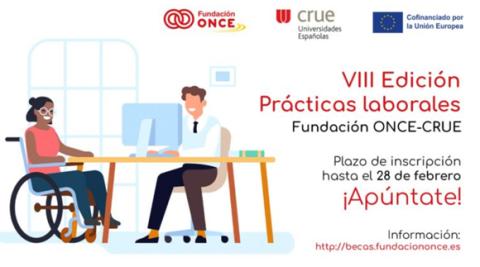 Fundación ONCE y Crue-Universidades Españolas han convocado por octavo año consecutivo su programa de becas para la realización de prácticas externas por parte de estudiantes universitarios con discapacidad, una iniciativa que cuenta con la cofinanciación del Fondo Social Europeo en el marco del Programa FSE+ de Inclusión Social, Garantía Infantil y Lucha contra la Pobreza 2021-2027. Gracias a esta iniciativa se podrán beneficiar de las prácticas 300 universitarios con discapacidad de toda España.