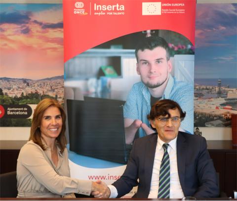 El vicepresidente ejecutivo de Fundación ONCE, Alberto Durán, y la directora general de Barcelona de Serveis Municipals (BSM), Marta Labata, han firmado hoy un convenio Inserta para promover durante los próximos tres años la contratación de personas con discapacidad en la compañía, referente en los ámbitos de la movilidad, la cultura, el ocio y el cuidado del espacio público en la ciudad de Barcelona.