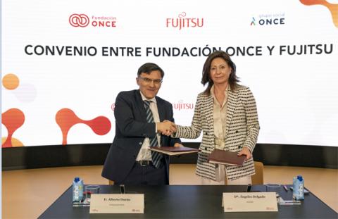 La presidenta de Fujitsu, Ángeles Delgado, y el vicepresidente ejecutivo de Fundación ONCE, Alberto Durán, han firmado hoy un convenio Inserta para promover la contratación de personas con discapacidad en la compañía tecnológica durante los próximos siete años.