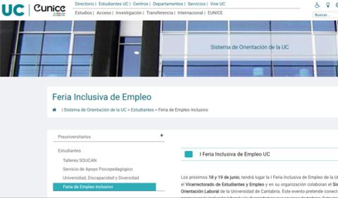 Esta feria, organizada por el vicerrectorado de Estudiantes y Empleo, junto con el Sistema de Orientación (Soucan) y el Área de Empleo y Orientación Laboral de la universidad cántabra, conecta a los estudiantes con empresas y entidades inclusivas en el ámbito laboral.