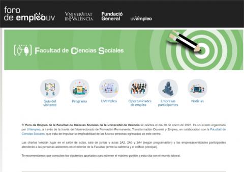 Se trata de un encuentro organizado por UVempleo, a través de la través del Vicerrectorado de Formación Permanente, Transformación Docente y Empleo, en colaboración con la Facultad de Ciencias Sociales, con el que trata de impulsar la empleabilidad de los futuros egresados de este centro.