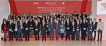 En esta tercera edición, serán 5.000 los universitarios de toda España que podrán realizar prácticas profesionales remuneradas en pyme a lo largo de 2014. Cuando finalice este curso académico, 12.500 estudiantes se habrán beneficiado de estas becas y 5.000 más lo harán en el próximo curso 2014-2015. De esta forma, desde el inicio de la crisis, Banco Santander habrá destinado en total 31,5 millones de euros a financiar 17.500 becas pyme.